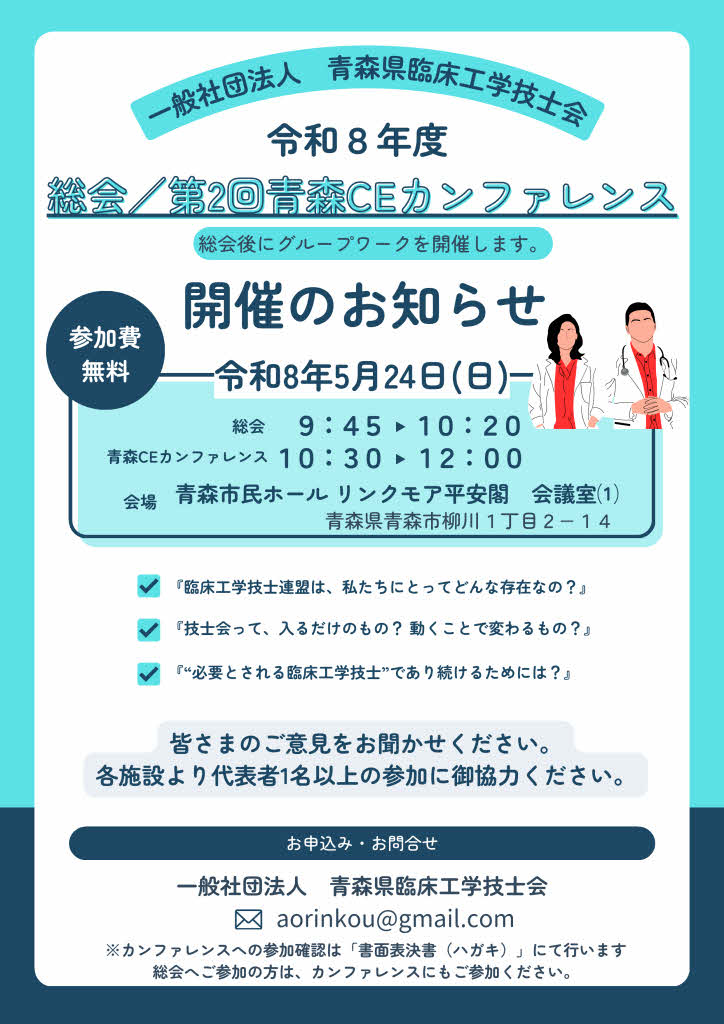 [令和7年度 青森県臨床工学技士会総会]および
